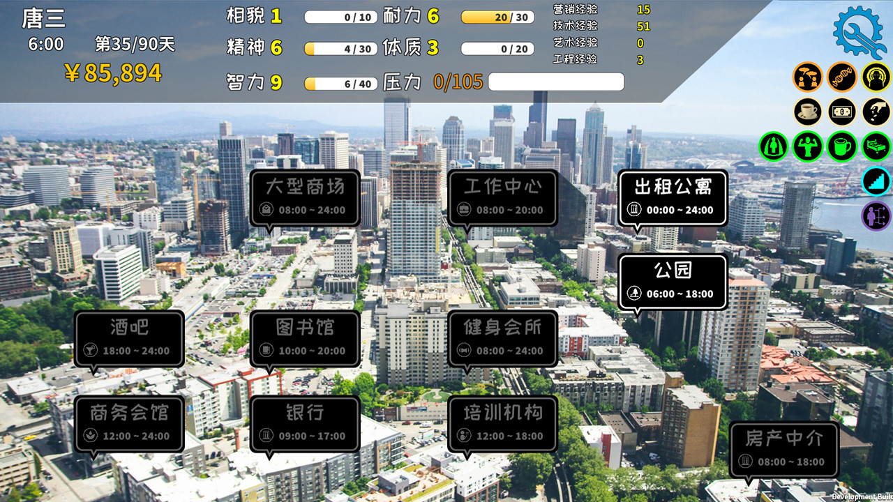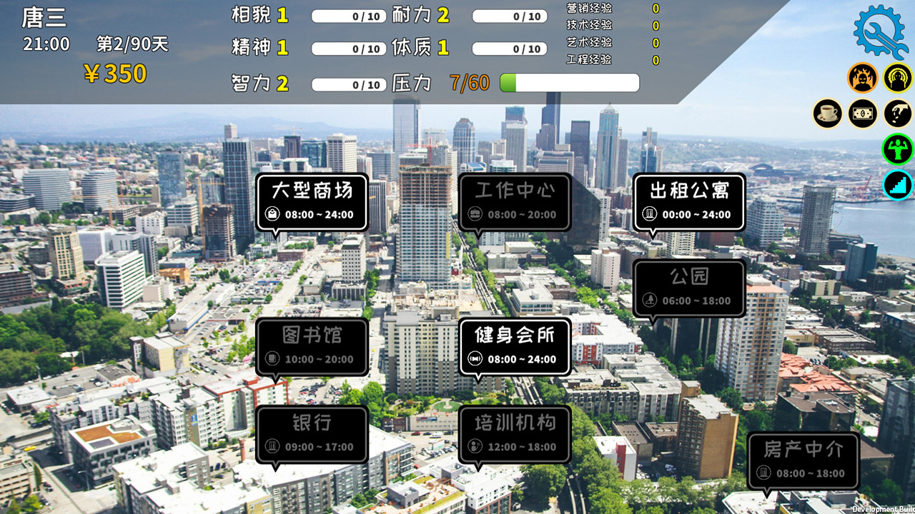 游戏以连续决策的形式,在90天里抽象模拟在大城市闯荡时可能经历的困难、面对的压力和抉择。