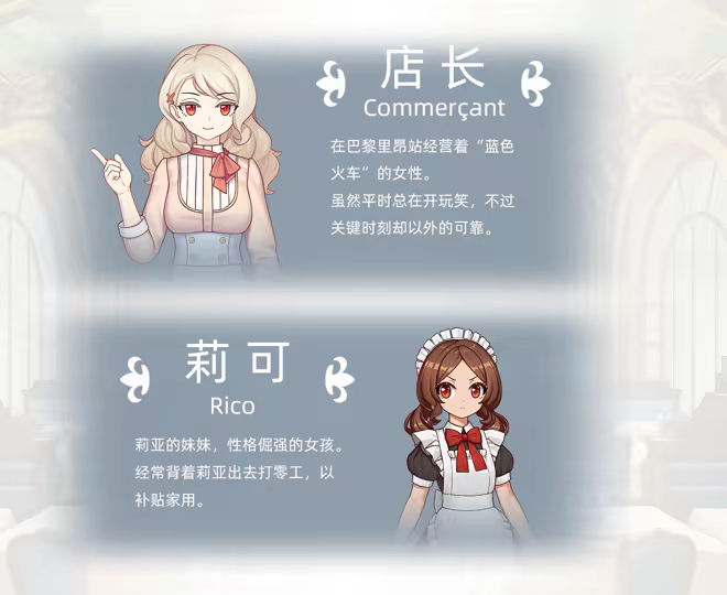 在本作中,玩家将回到1920年的巴黎,扮演一位远渡重洋前往法国留学的青年——廉丰,在这座百花盛开的花之都中,体验浮生百态,感受人情冷暖。