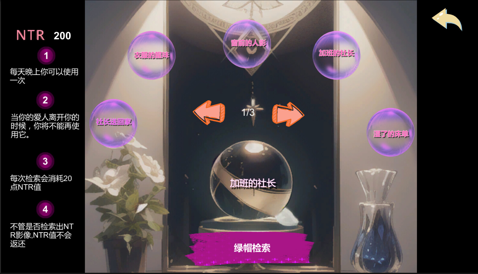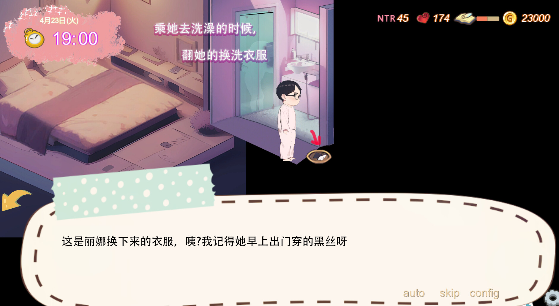 这是一款18禁的恋爱推理调查游戏。你将扮演一名25岁的公务员备考生,在机缘巧合下和心爱的女孩同居了。本以为会像恋爱电视剧一样发展,但是现实并不是想象的那样。你被戴绿帽了吗?心中的谜团越来越多,你开始不停地调查。