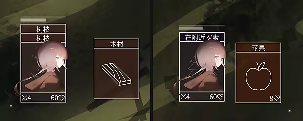 例如将角色卡放在场景卡上,角色将自动探索该位置。或者将角色卡和道具卡放在一起,组合成新的道具。