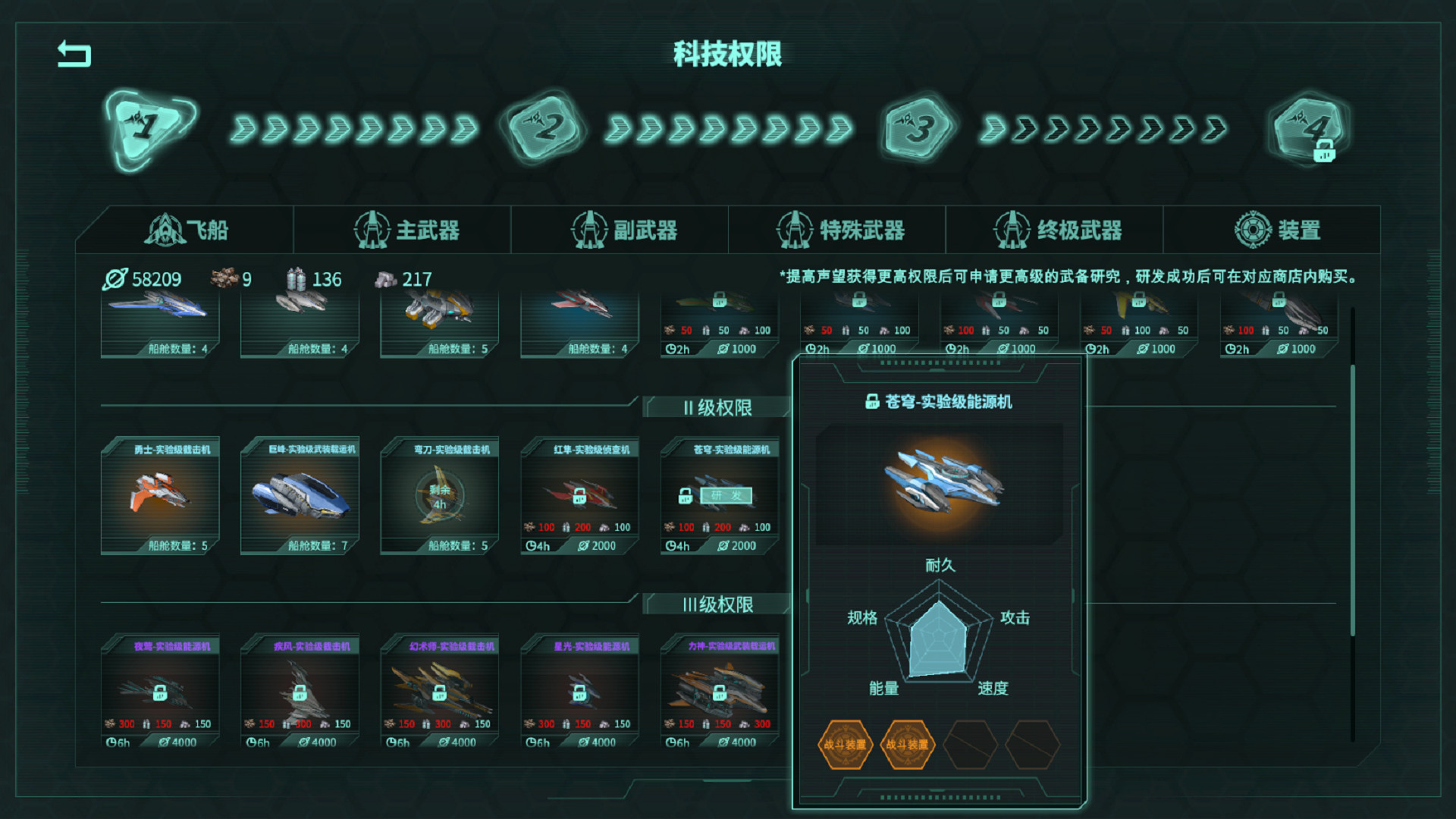 *玩家可通过科技升级来研发更强力的飞船,武器和装置;