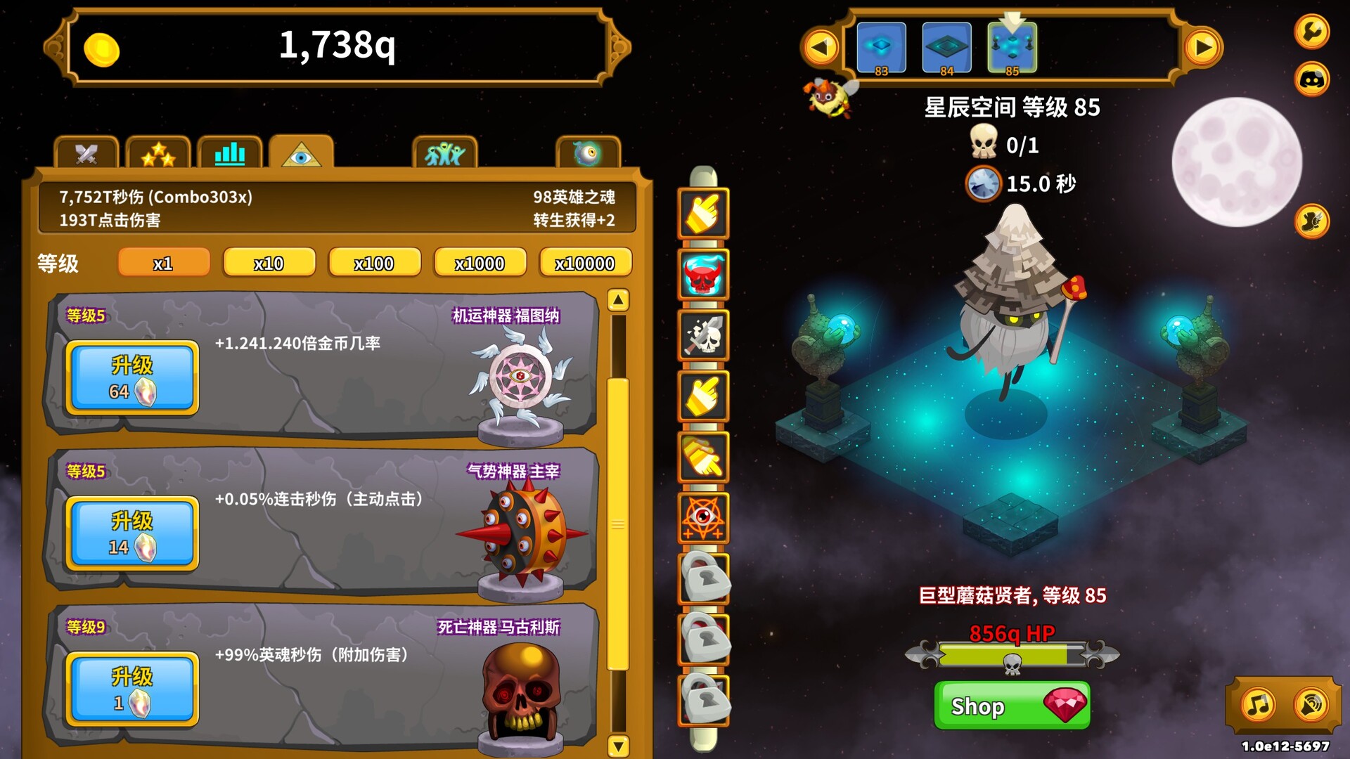 好奇16位数的每秒伤害是什么感觉吗?不用再想了!踏上征程,马上体验!点击怪兽开始杀怪,获得金子。用金子来雇佣新英雄,造成更多伤害。造成的伤害越多,获得的金子也就越多。