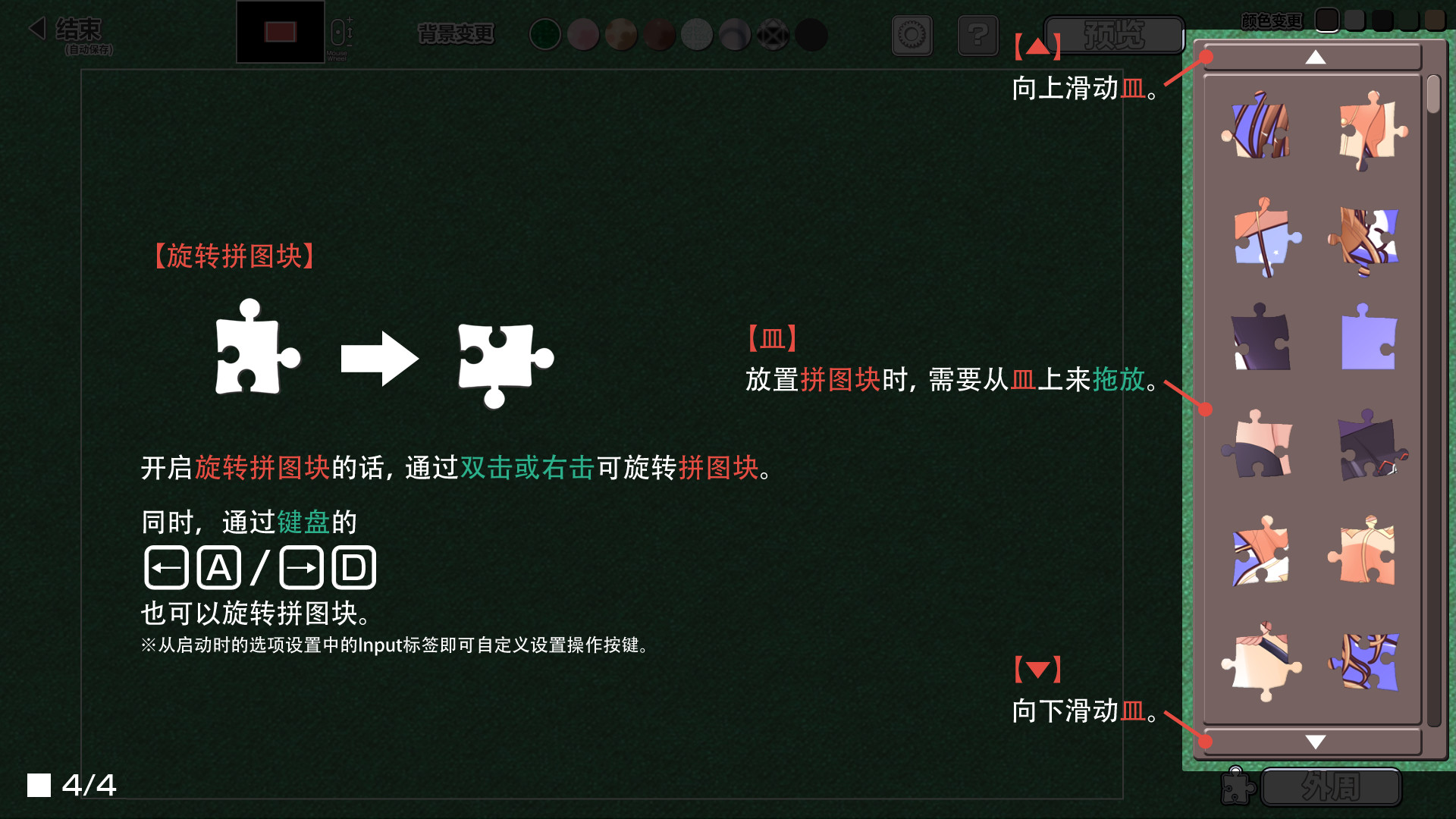 自动保存功能,仅显示外周拼图块的功能等等,为了顺利完成拼图,也准备了许多的便利功能。