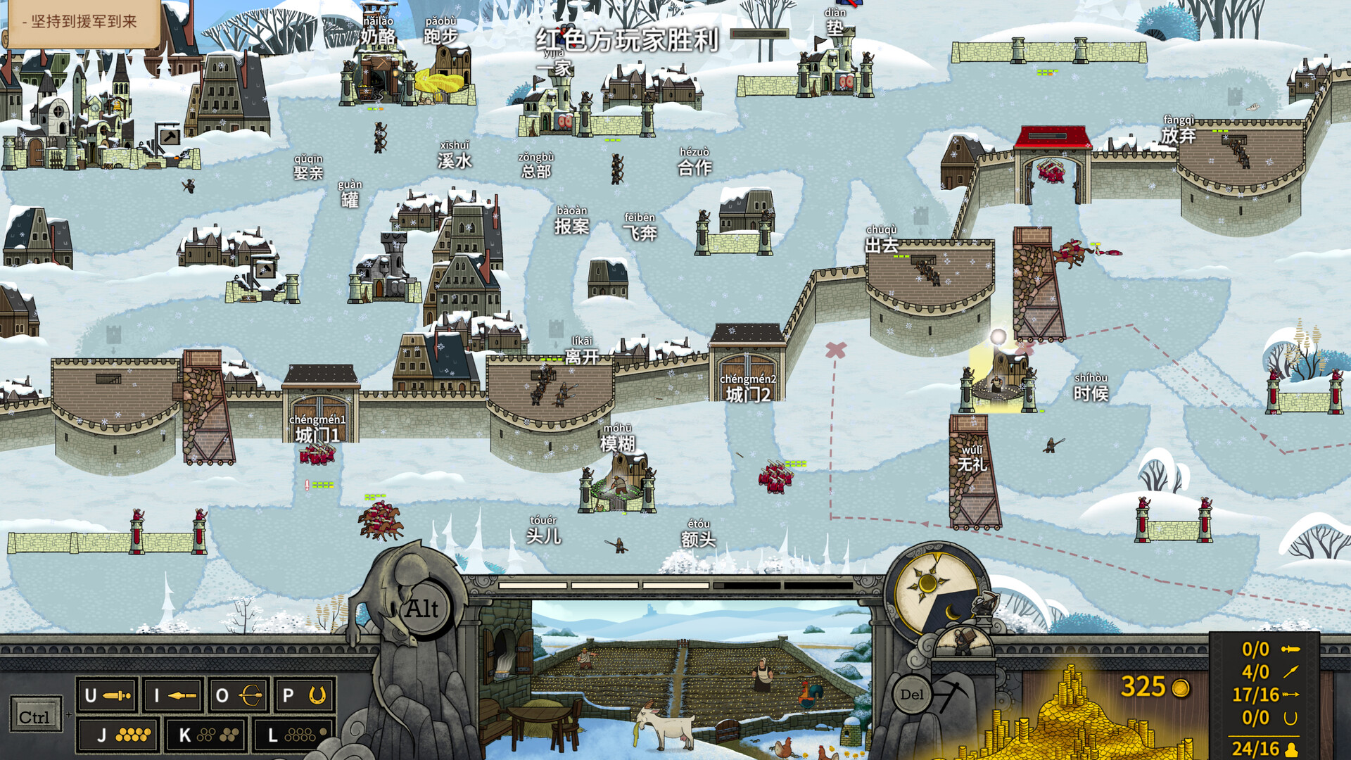 雇佣工人采矿与耕种,从而获取黄金。花费黄金升级单位和建筑(如马厩、军营和枪兵营),不断壮大势力。