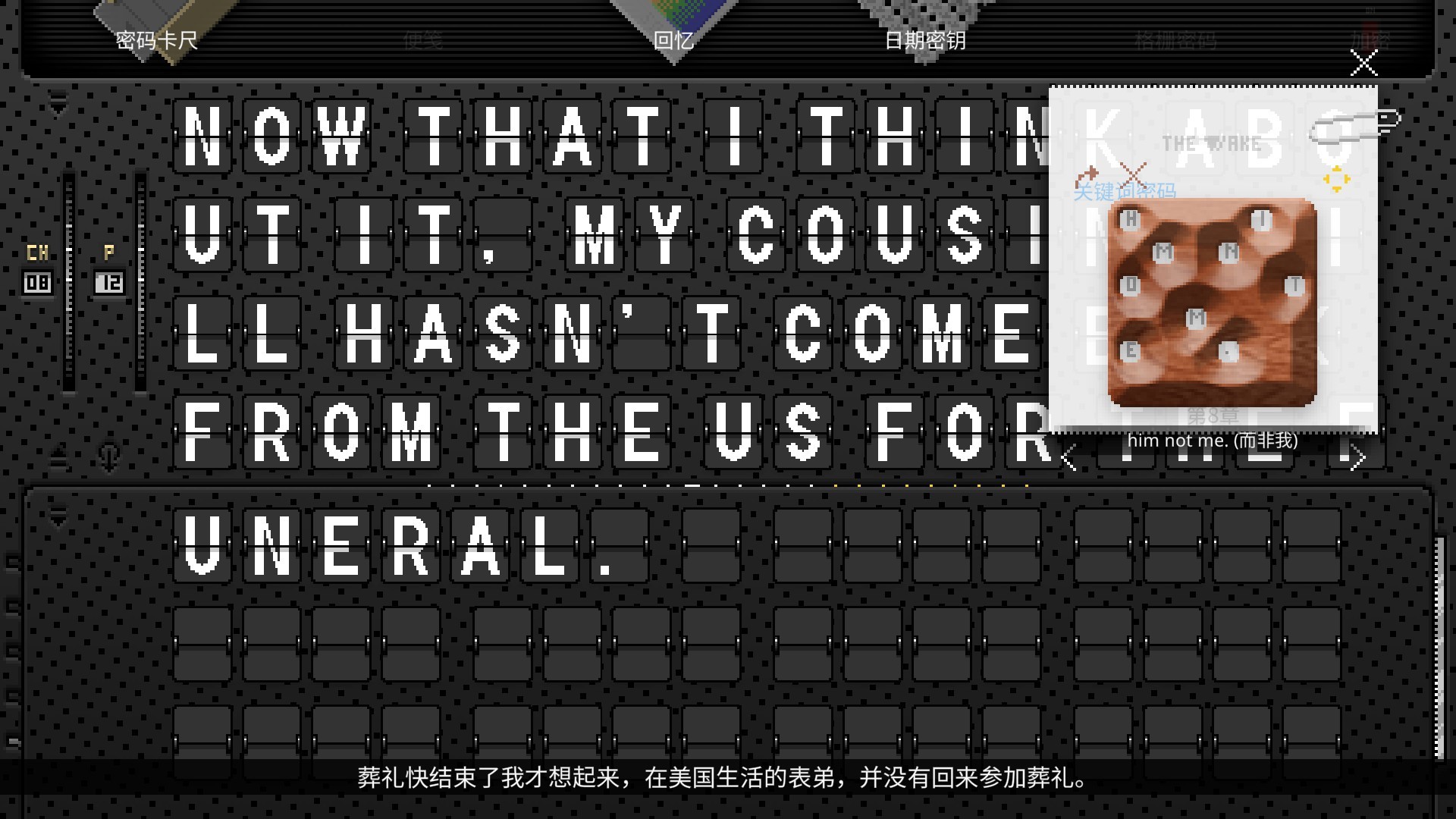 玩家只有在破译之后才能获悉真相,并感受作者埋藏在字里行间的深沉情感。