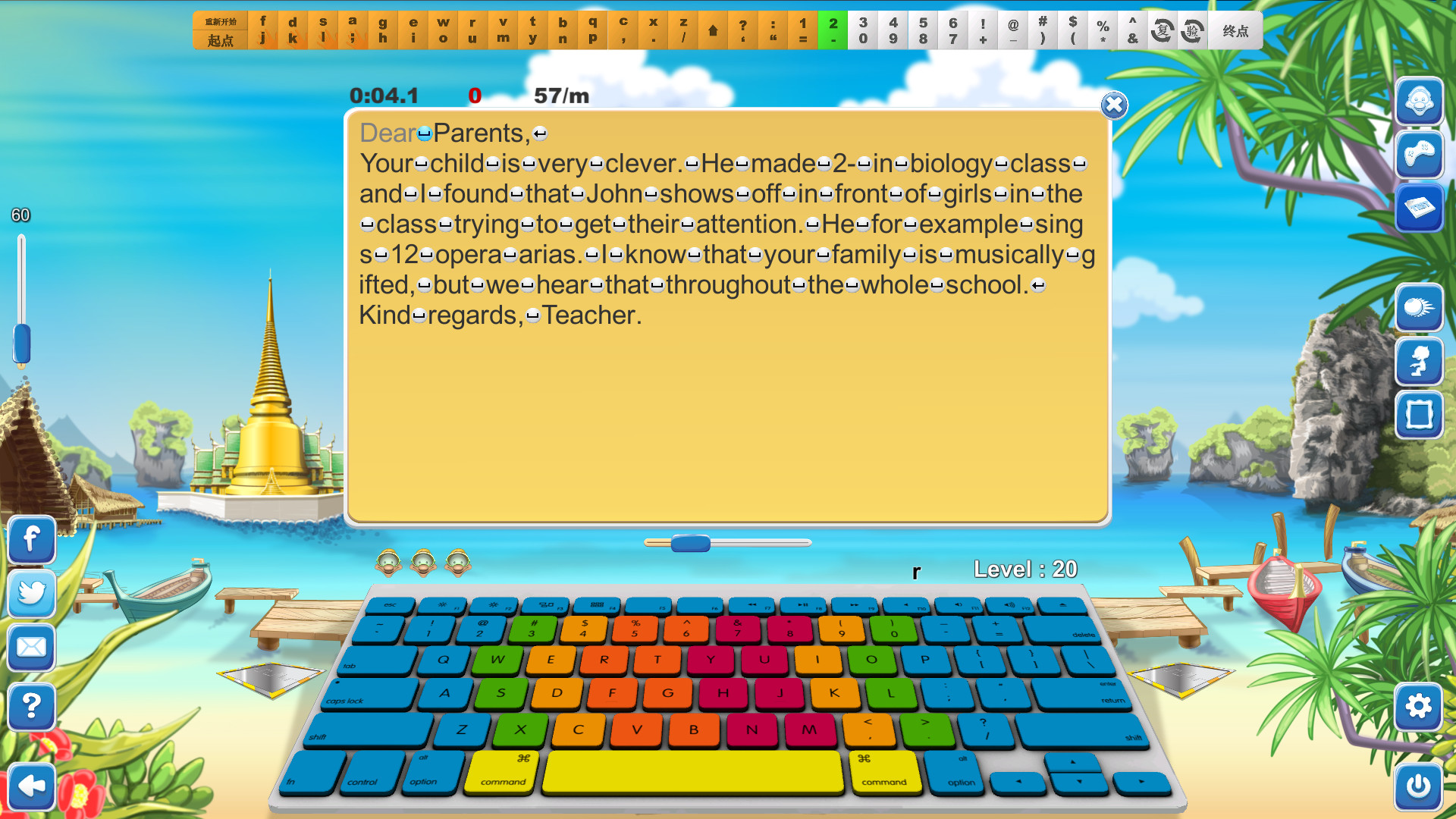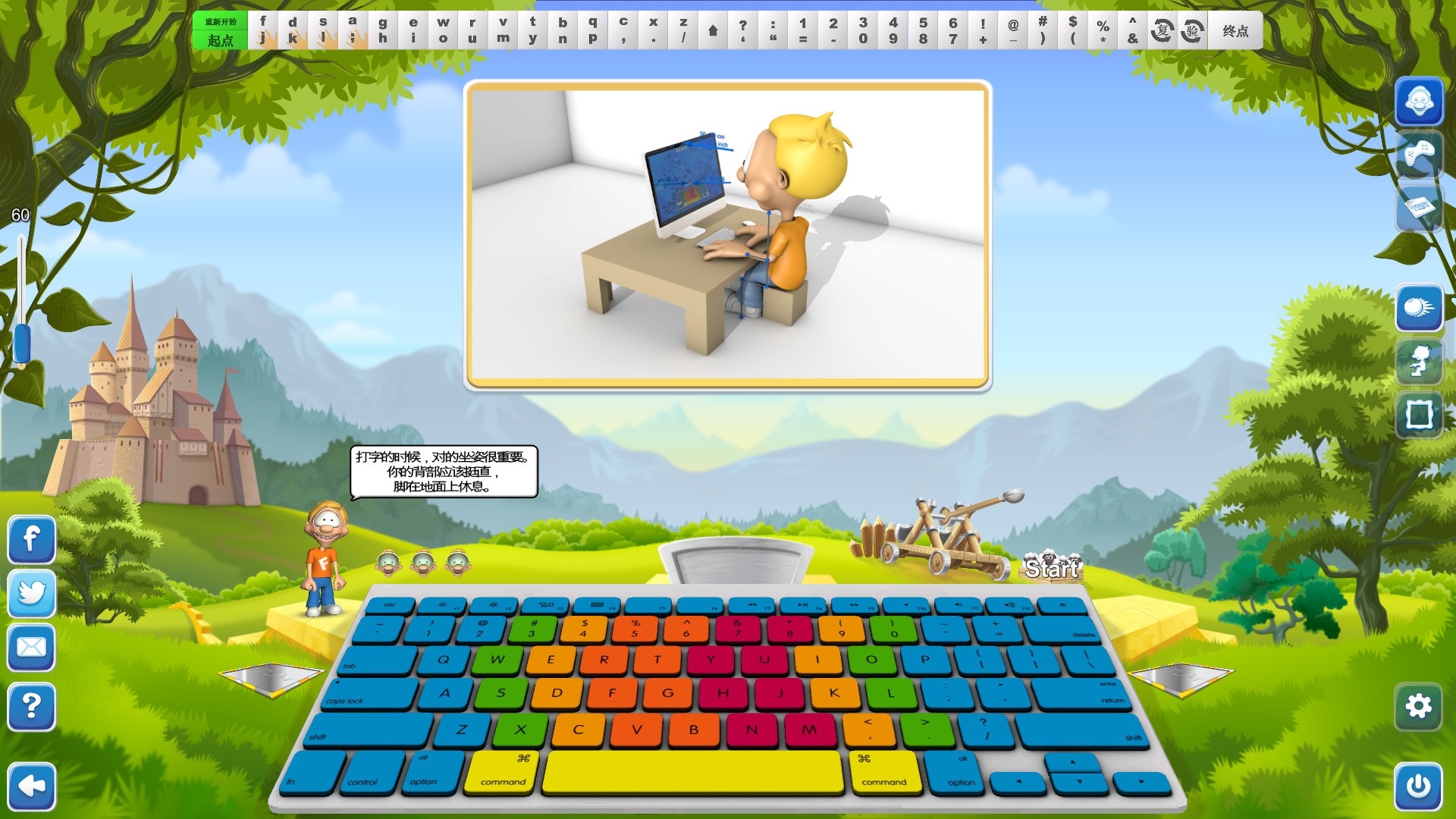 在这32关里,小老师Dennis会协助你学习哪些手指将敲击哪些键。每一关为渐进式的,所以你会有趣且轻松的学习如何使用键盘。