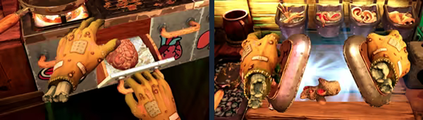 为了满足来客的味蕾,你需要烹饪让人毛骨悚然的菜肴。剁开在水族箱底部栖息的贪食怪兽,用切断的手指炸一盘薯条,用来源不明的肉做几份炸肉排……