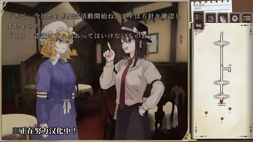 以东方Project闻名的上海爱丽丝幻乐团,制作发行音乐CD系列「秘封俱乐部」。本作是秘封俱乐部的二次创作小说游戏。 本游戏不存在选择界面。 根据故事中获得的记忆“碎片”和玩家自身的智慧来发展故事,成功引导她们的冒险——莲台野夜行吧。