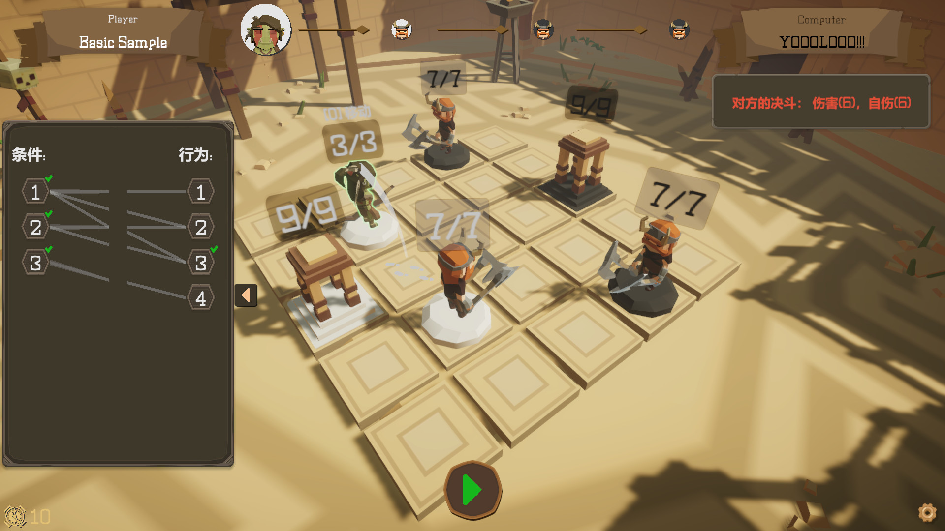 欢迎来到Bongo Arena,这是一个设计AI战术的回合制战棋游戏。你无法在战斗中直接控制你的单位,只能在战前提前设计好需要执行的策略。每一关的电脑会有不同的角色搭配和策略制定,实际的游玩过程有点类似破解棋局。