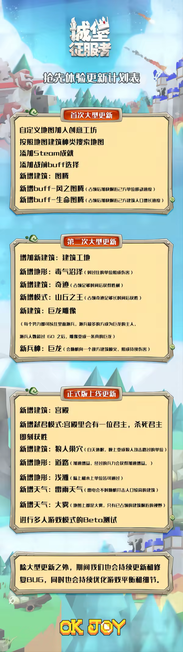 攻占敌方城堡!征服所有小岛!《城堡征服者》是一款以战争为题材的即时战略游戏,玩家需要带领自己的小兵攻占小岛上的城堡,将整座小岛占为己有。但在你攻打敌人城堡时,也请小心来自敌方的背刺!