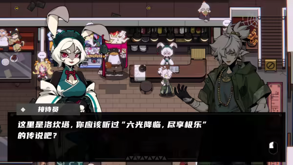 我们的故事发生在地狱里一座名为洛坎塔城的极端资本主义都市中,这里常年流传着“六光降临,尽享极乐”的传说故事,玩家扮演的主角阿乔,似乎与这传说有着不解的缘分,在邂逅神秘生物谛听之后,阿乔需要帮助这个小家伙寻找“她”留下的线索,并逐渐揭开整个洛坎塔的真相。