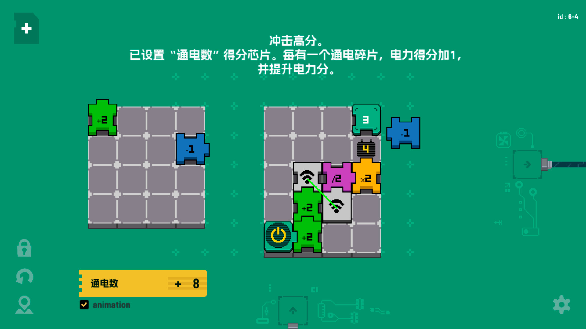 您可以通过组合棋子和增加/减少数字来获得分数。