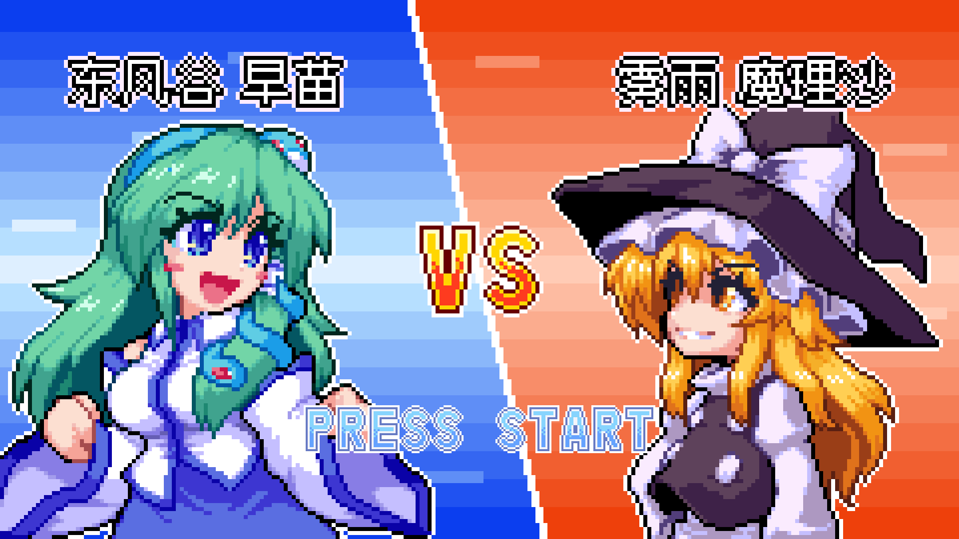 《与东风谷早苗的神风一起》是一款以可爱的像素艺术绘制的东方二次创作2D动作游戏。