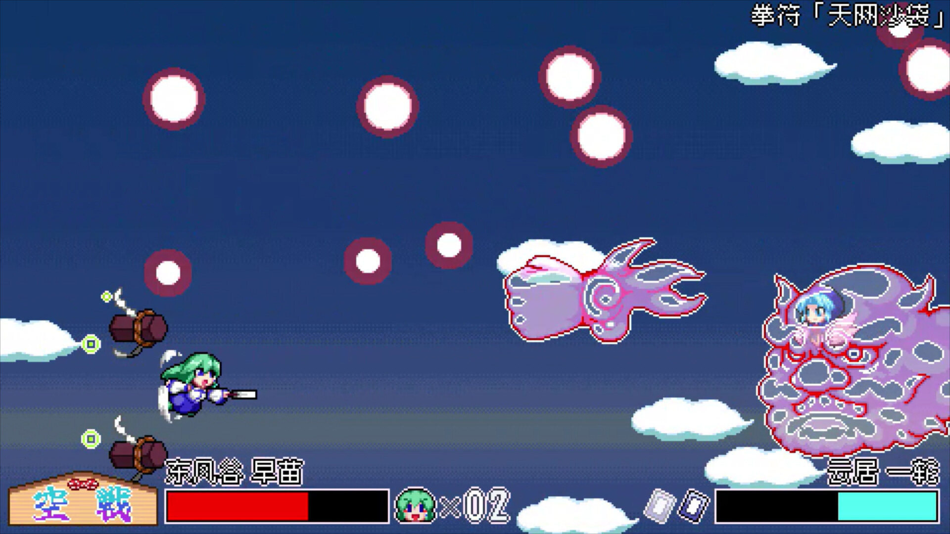 在空中战中,玩家可以纵横无尽地操纵早苗,享受射击游戏的乐趣。