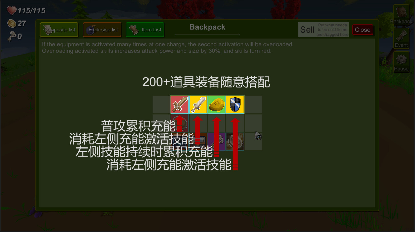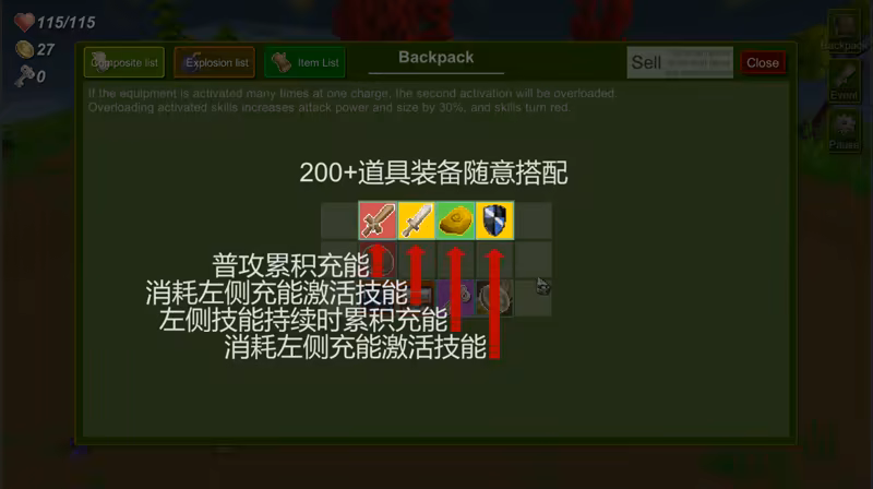 像素旅人-Pixel Traveler是一款 rogue-lite 动作游戏,可以自由编辑技能连携触发链条。 设计自己的技能组合,每次创造不同的协同效应;利用有限的资源,互相转换合成获得理想的技能组合,调试发挥最大的效果。