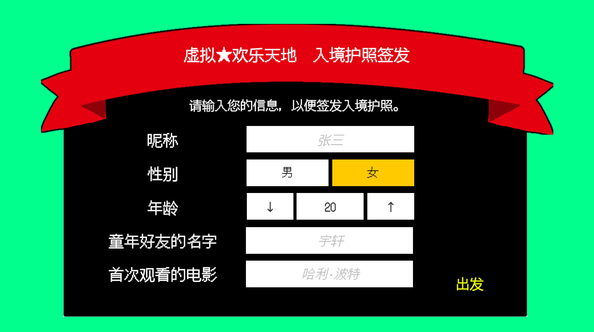 您在本作中填写的信息仅用于游戏内,并将在游戏结束时删除。