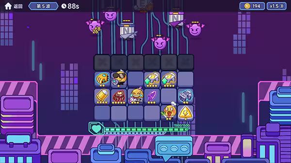 需要选择合适的emoji射手和道具,放置到阵中,射手和道具会作为塔防要素随机分布,有几率打出极高伤害;