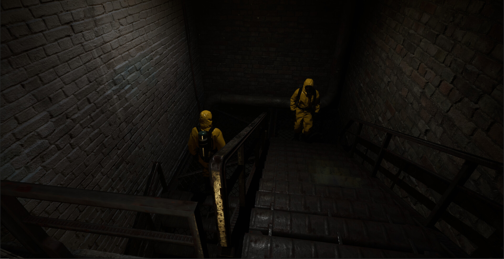 You are a group of 4 people armed with modernized HAZMAT suits. The leader of the group has the equipment to open the doors on level 15 Futuristic Halls . Bringing the equipment and rescuing the lost research group is your main task.