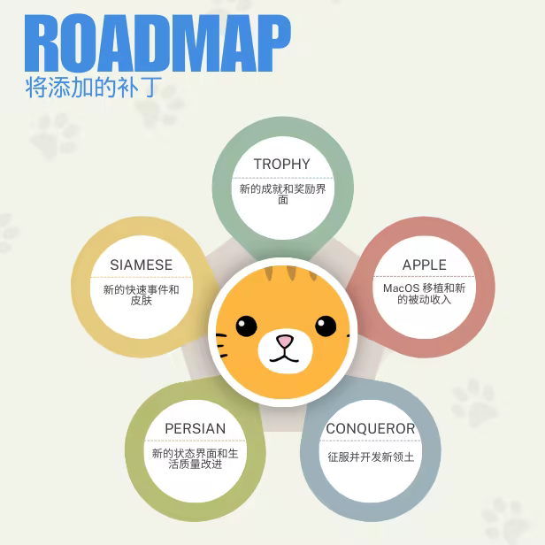 付费内容或微交易?:我们对 The King Cat Clicker 的愿景是,它将成为一款只需购买游戏本体,未来内容无需额外支出的放置/点击类游戏。我们承诺不会在游戏中加入广告、微交易、库存物品或任何掠夺性机制。