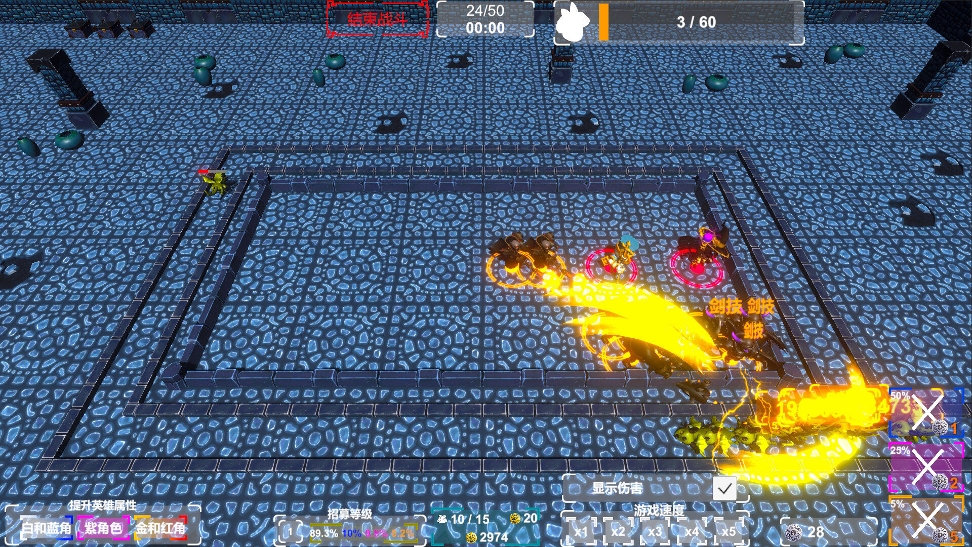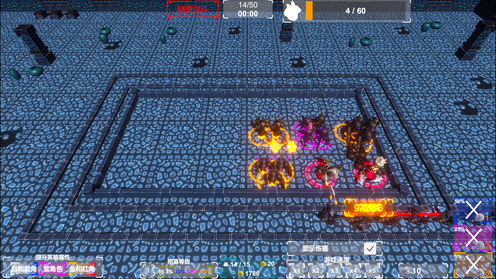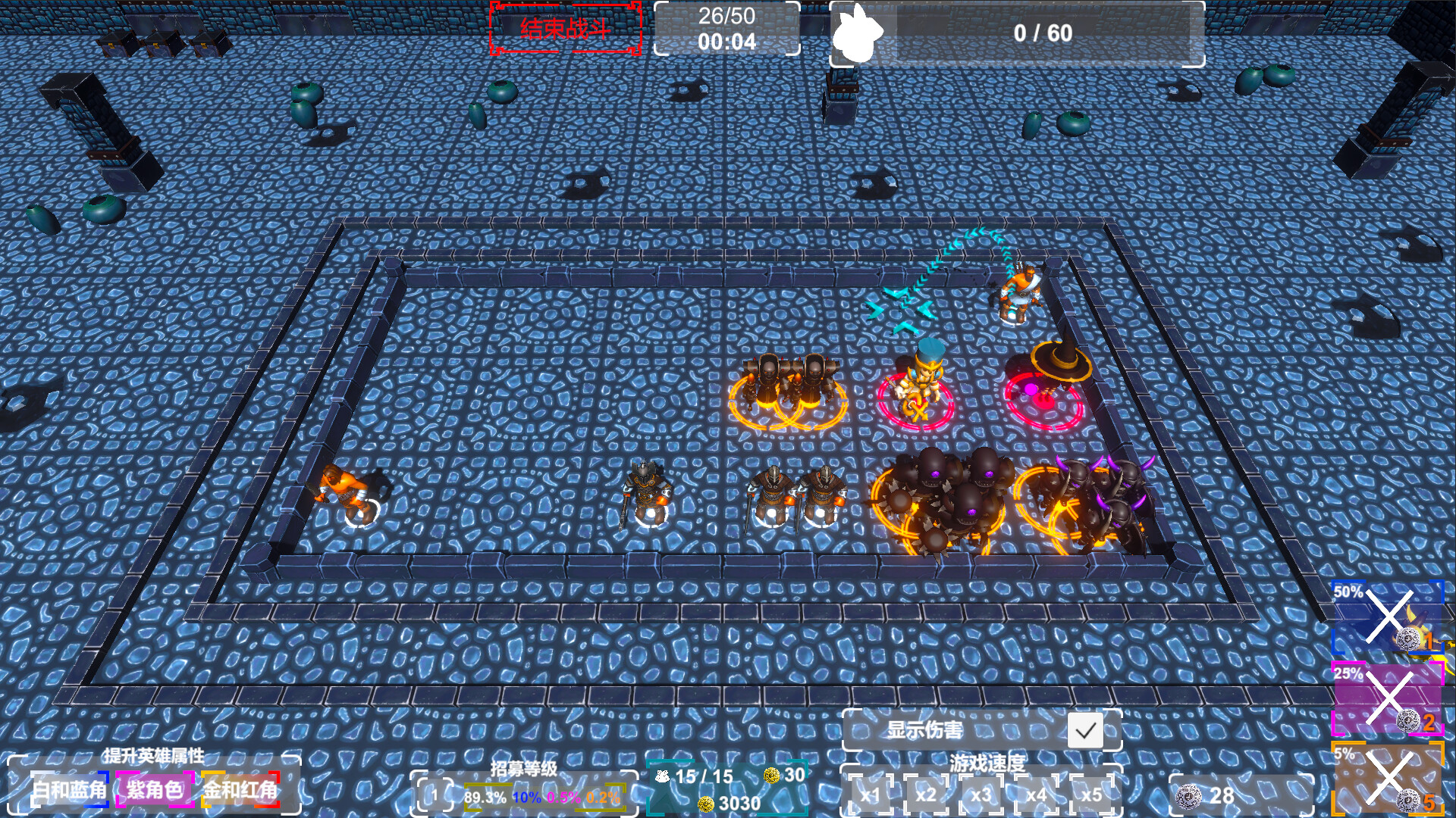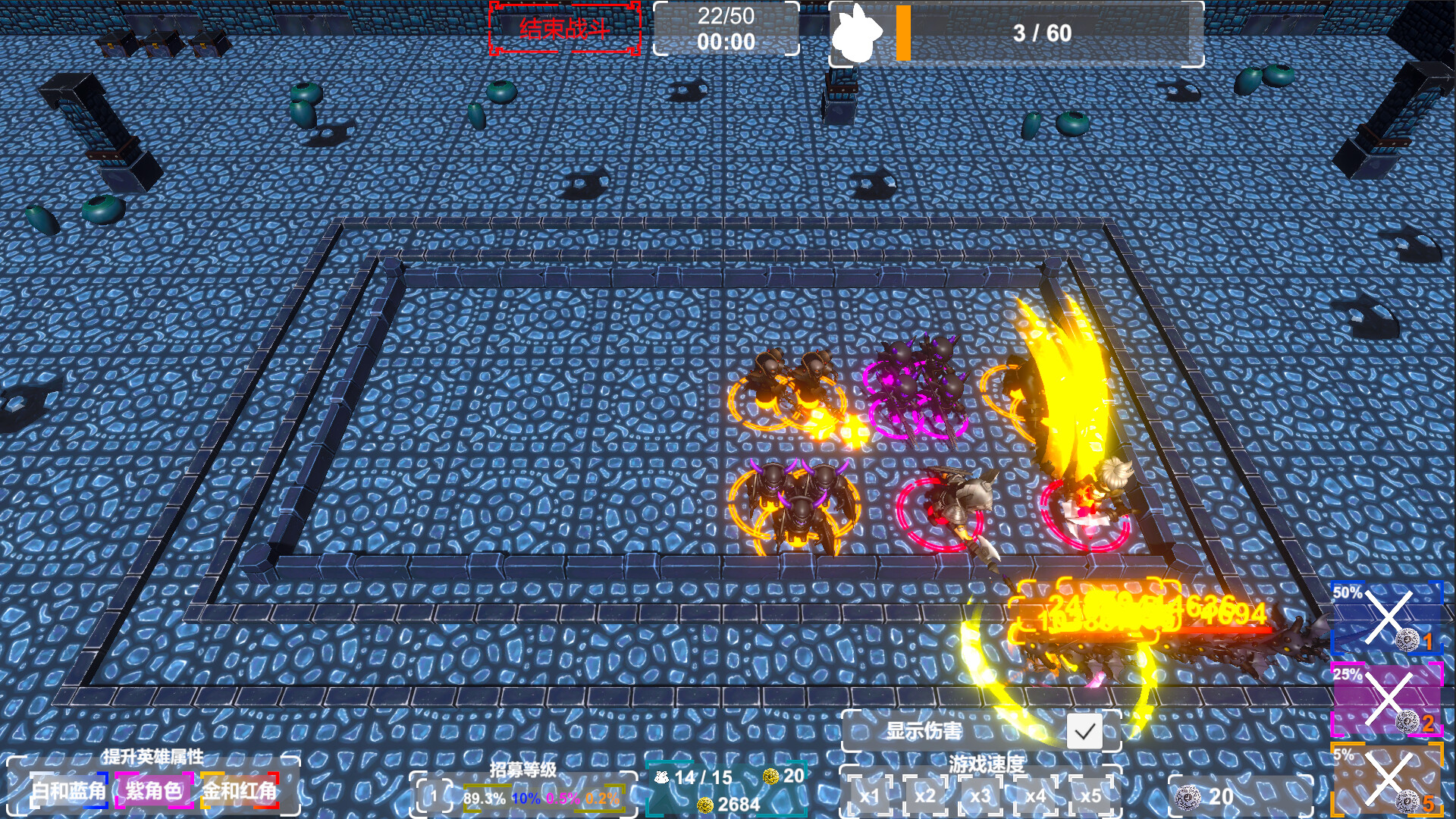 在战斗中每个回合怪物会出现在战场中,只要怪物没有死亡,它会不断的围绕棋盘移动,而你需要做的就是招募英雄击杀怪物。