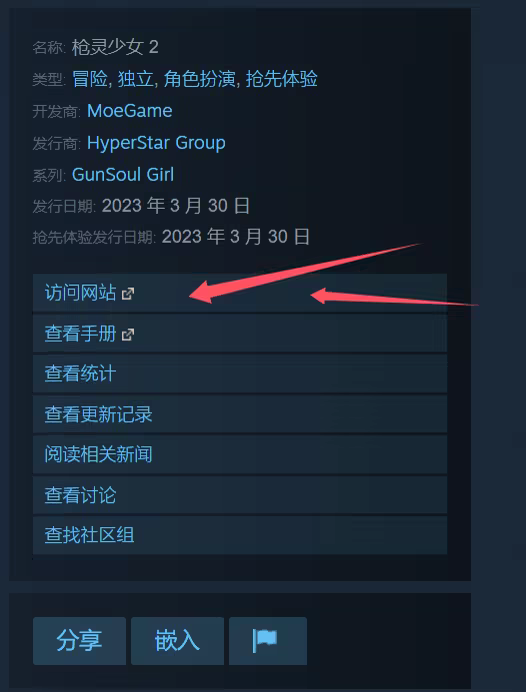 在本商店页面右侧点击"访问网站"中进入Steam聊天