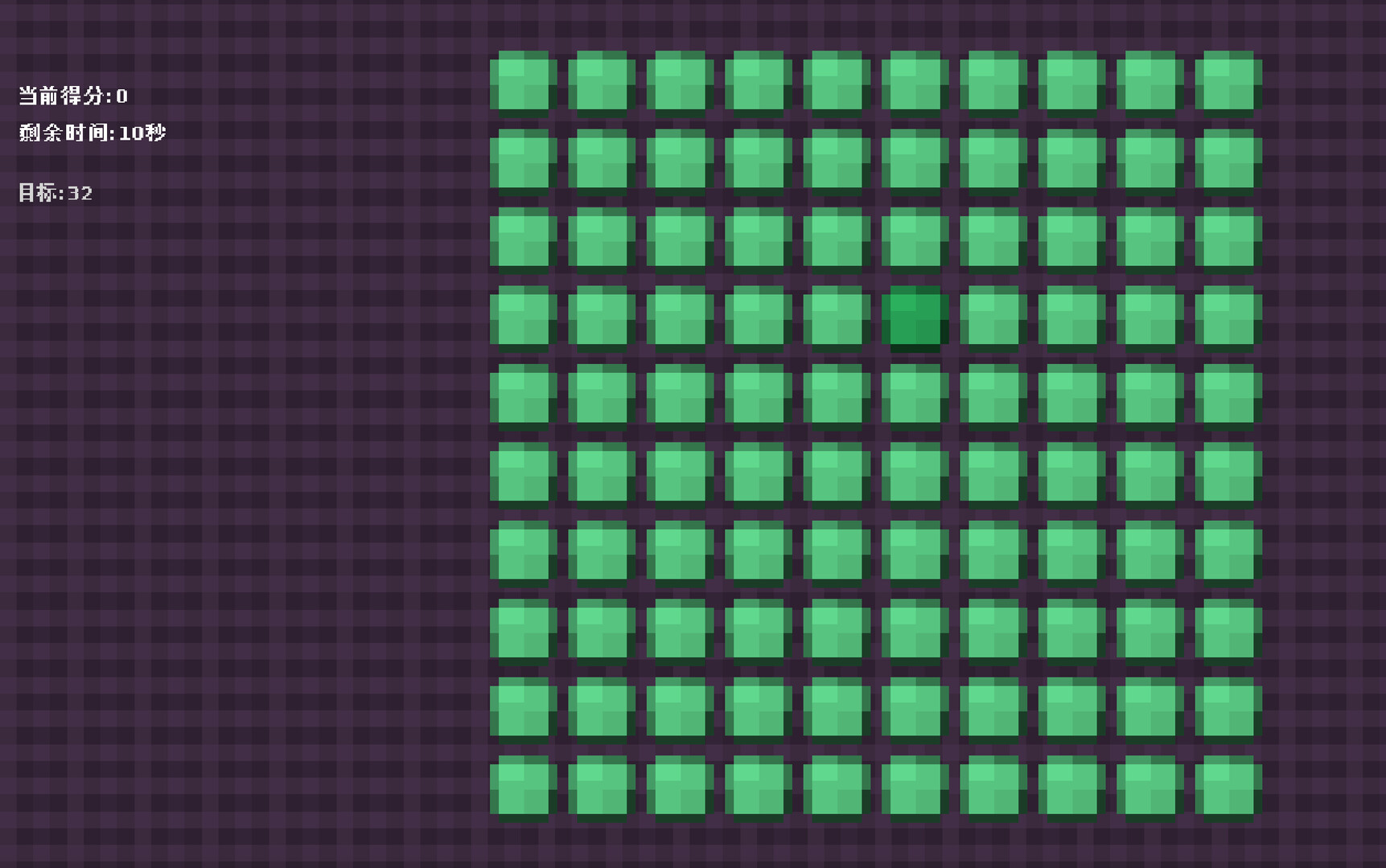 点击网格中颜色不同的方块,就这么简单。但是当颜色差异小到几乎看不出来的时候,你还能保持冷静吗?游戏开始给你5秒时间,正确识别奖励1秒,识别错误扣除1秒。